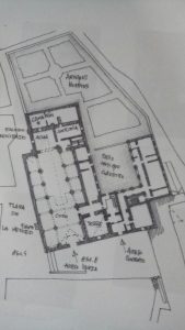 Croquis del conjunto conventual y del claustro.