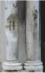 Roturas de columnas, basas, fustes, capiteles, entablamento. Según Cultura y Ayuntamiento está intervenida. MENTIRA