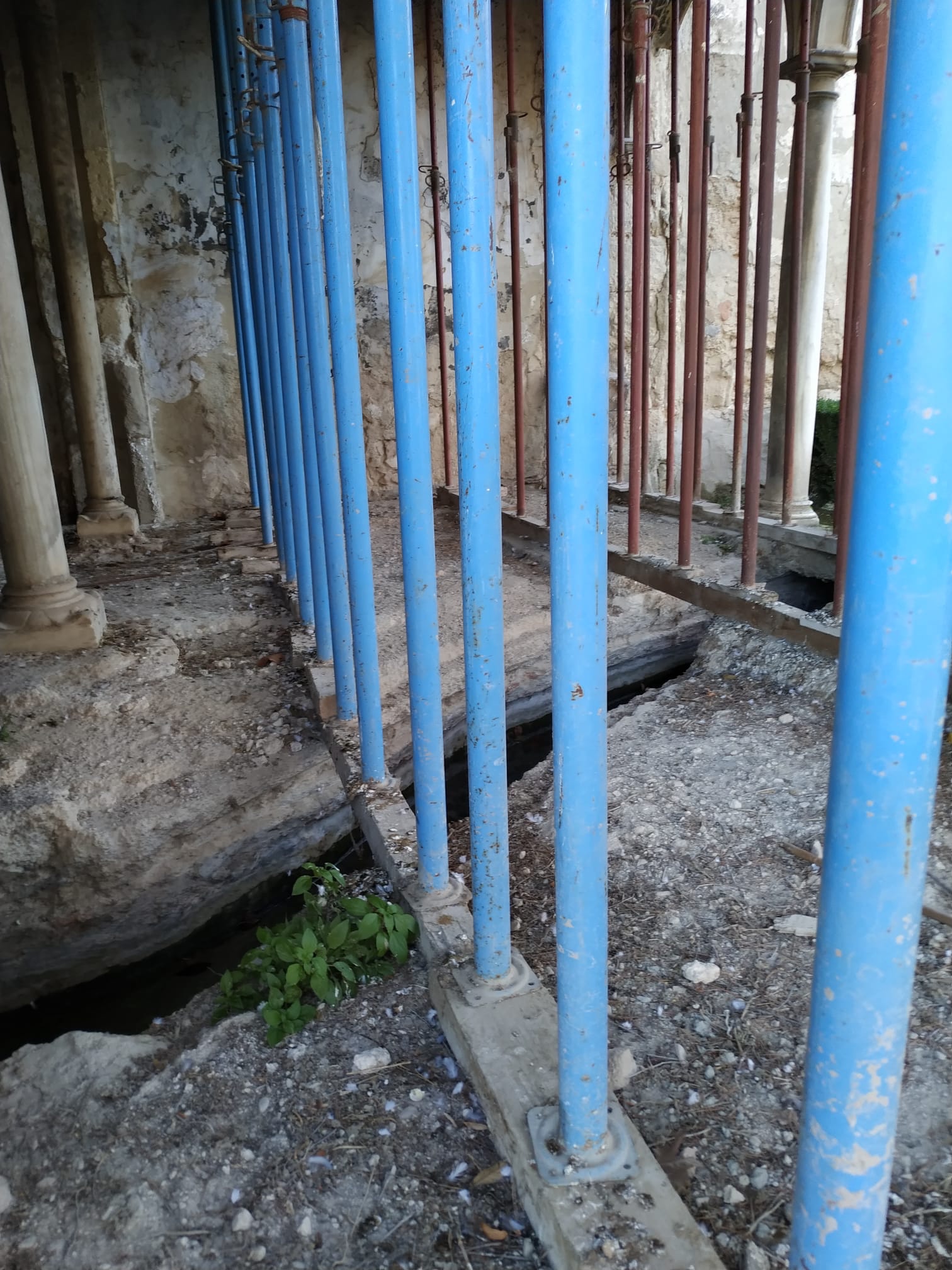 Roturas de columnas, basas, fustes, capiteles, entablamento. Según Cultura y Ayuntamiento está intervenida. MENTIRA
