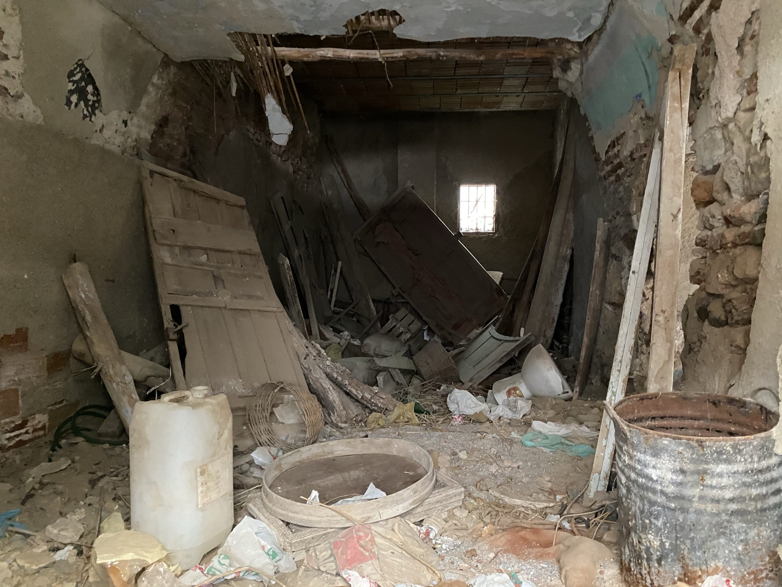 El edificio está abandonado desde hace más de 20 años, presentando un deterioro más que evidente…Su estado es delicado. Ni se sabe lo que queda (dobles techos de cañizo, mutilaciones -2011-) ni hay ningún informe.