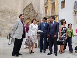 Rosa Torres, Pedro Fernández y Juan Espadas en el centro de la foto, en la Plaza Mayor de Baza