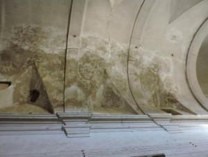 Observen detenidamente la terrible humedad y la caída dentro y junto al primer luneto de la izquierda… SOS, SE NECESITA URGENTEMENTE UNA NUEVA CUBIERTA en todo el templo.