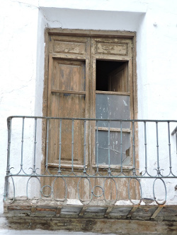 La única carpintería restaurada (una limpieza y poco más) es la de la portada. El resto de las carpinterías está en estado más que lamentable, de pura ruina, algunas agrietándose, pudriéndose y desplomándose de sus marcos. La afirmación de Cultura y del Ayuntamiento de que las carpinterías se han restaurado en la última década es totalmente falsa. Miren las siguientes fotografías.